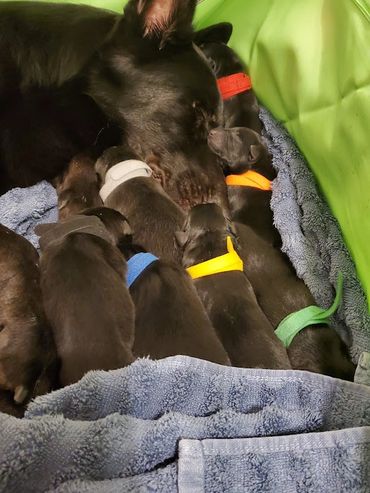 We put a lot of work and effort into our dogs and as such they are a precious and integral part of our family. This gives us an intimate knowledge of their health, temperament and capabilities. Consequently, we are discerning about potential new owners. The only difference in price of our dogs is the amount of training we have in them. No price difference between a male, female, family pet, working dog and colors. Please call pricing on current litters.