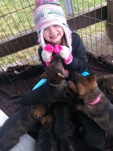 RHK focus on quality rather then quantity. Every pup is special to us. Each litter is carefully thought out and planned and we always keep pups back for ourselves and or for training to sell as adults. This gives us a deep knowledge of our bloodlines genetics and helps us ensure the healthiest and best pups for our clients. Every litter is born and raised in our home right along with our family. The litters have outstanding pedigrees that exhibit what the German Shepherd’s dog is supposed to be; a healthy, versatile working dog that is great with the family and farm and able to do a variety of jobs.